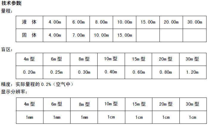 l 聲波束角:8°(3db) 4m、6m、8m 型 5°(3db) 10m、15m、20m、30m 型